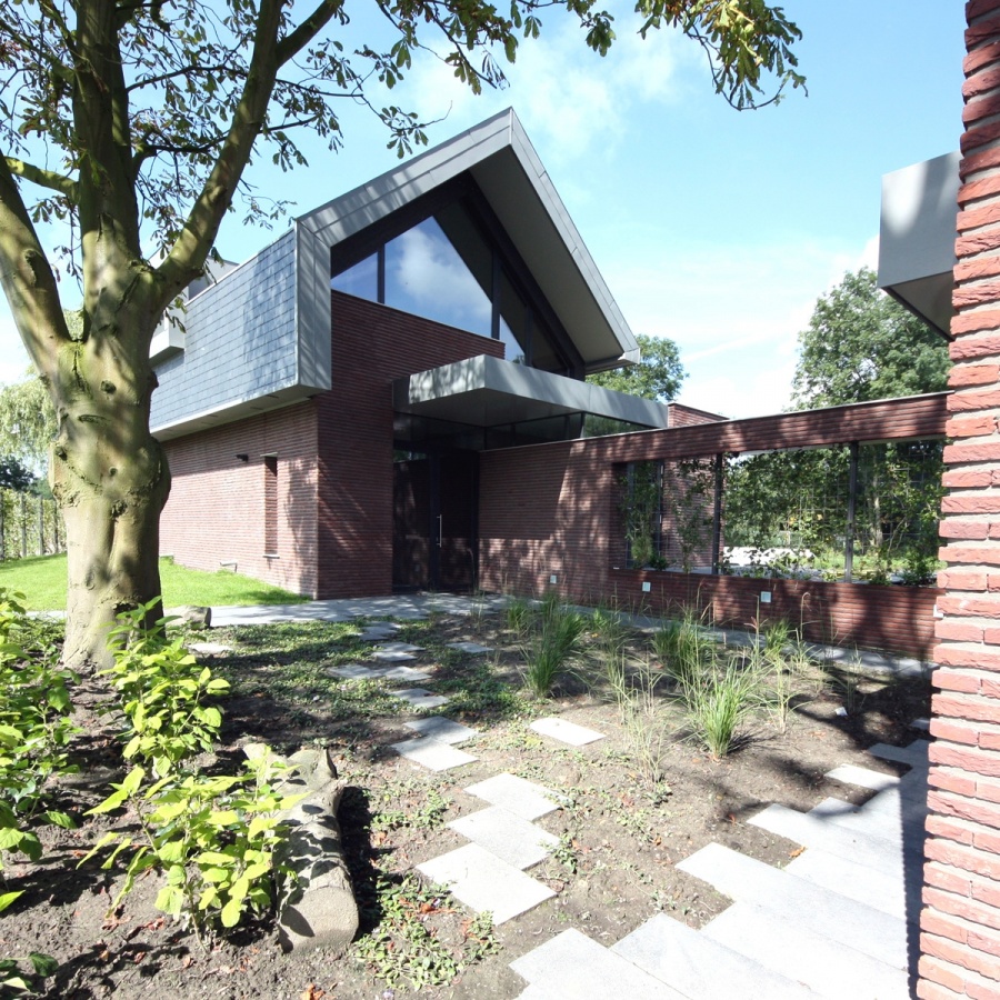 On a triangular plot, where the historical Vlietweg diverts from canal the Vliet, VVKH designed a house based on experiencing the Vliet. Rough, brick walls engage each other, vaging what is inside and outside. Water and landscape are part of the house.