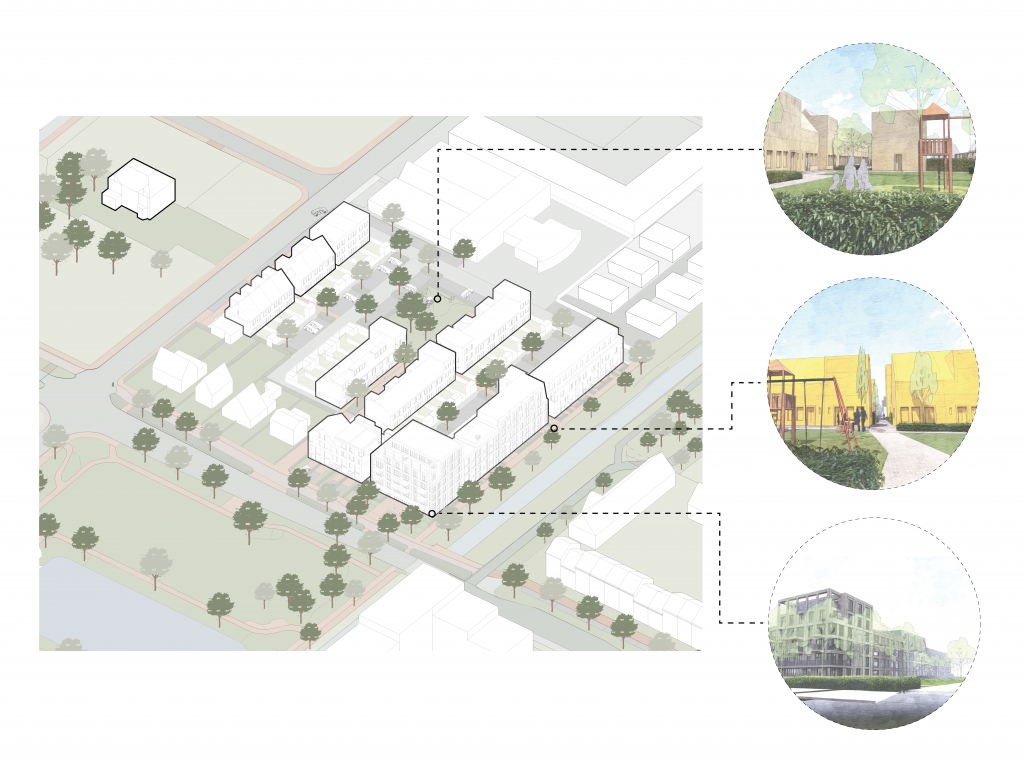 Het plan bestaat uit 57 appartementen voor kleine huishoudens en 44 eengezinswoningen. Verwacht wordt dat de eerste woningen in het derde kwartaal van 2025 opgeleverd worden.