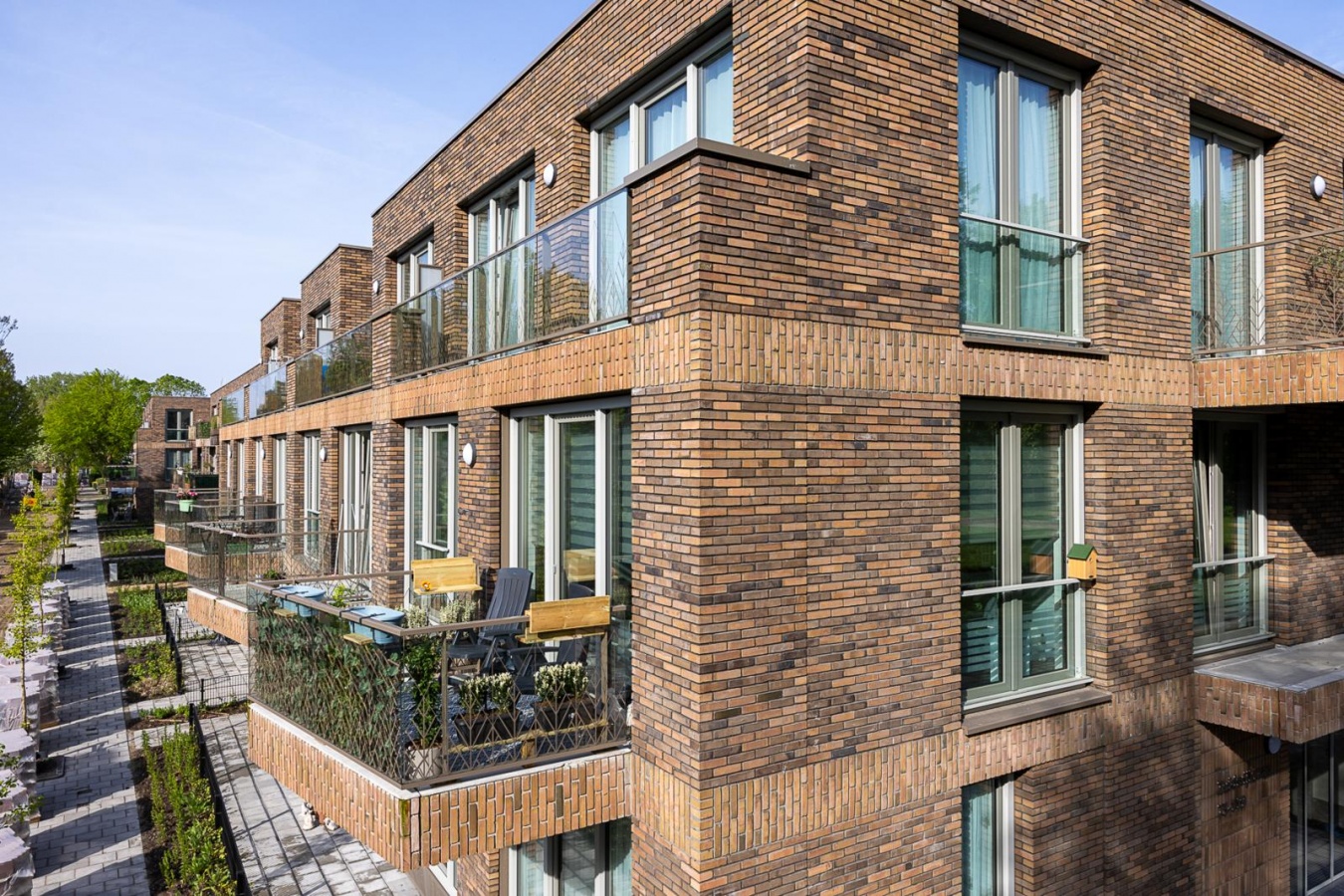 De gebouwen hebben een formele voorkant met zogenaamde zoomwoningen op de begane grond. Dit zijn ondiepe woningen met de toegang en een tuintje aan de straatzijde. De achterkant grenst aan de parkeerplaatsen onder een opengewerkt, groen dek. In het plan blijft de bestaande boomstructuur gehandhaafd. Om privacy te creëren in de voortuintjes is een strook groen tussen de tuinen en het trottoir gemaakt. De woningen op de verdiepingen worden ontsloten middels brede galerijen.