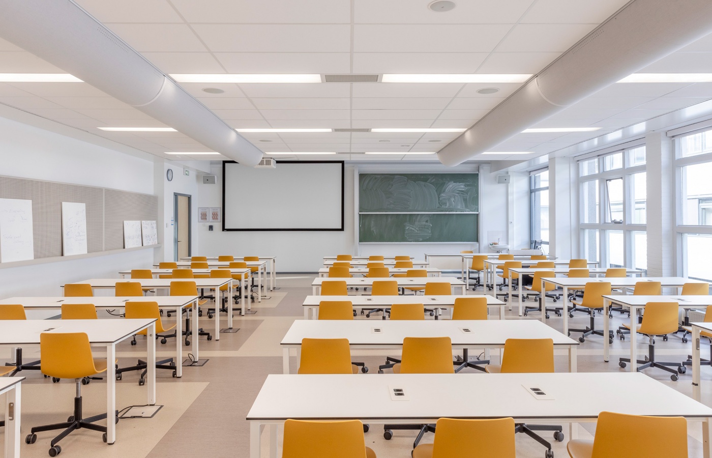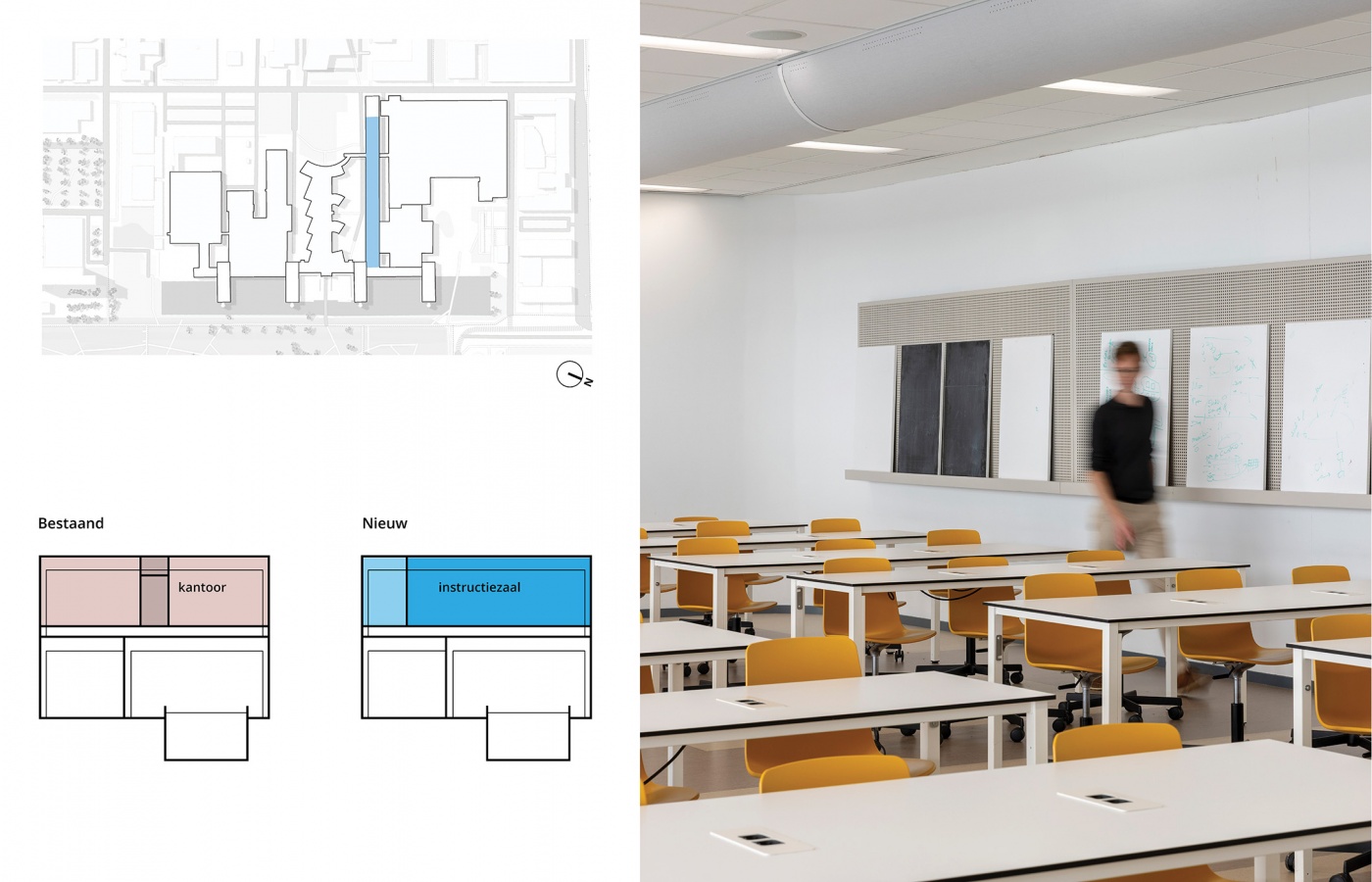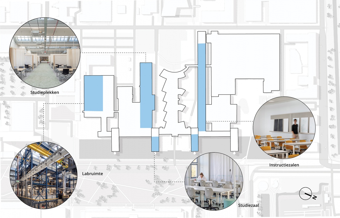In een ander bouwdeel hebben we instructiezalen gerealiseerd met de mogelijkheid zowel frontaal als groepsgewijs les te geven, met bijpassende presentatiemogelijkheden. Veel aandacht gaat uit naar een goed klimaat en een rustige akoestiek. Op andere plekken wordt juist ruimte geboden aan een veelheid van nieuwe en bestaande proefopstellingen, die een uiting zijn van waar deze faculteit voor staat: altijd nieuwsgierig en op zoek naar wat de wereld draaiend houdt.