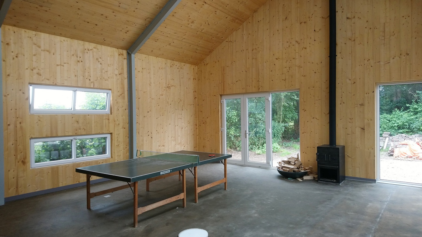 Werken met CLT bleek hier de ideale methode. Het gebouw kon snel en licht geconstrueerd worden, en de ruwbouw is gelijk de afbouw. De levendige tekening van het hout geeft de ruimte direct de gewenste sfeer. Bouwen met hout betekent bovendien het opslaan van CO2 in plaats van uitstoten. Met zonnepanelen en een warmtepomp is het gebouw geheel gasloos en energieneutraal. Vanaf 2022 is de locatie opengesteld via een online platform voor duurzame en natuurvriendelijke kampeerlocaties.