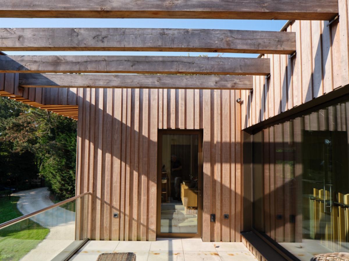 Werken met CLT bleek hier de ideale methode. Het gebouw kon snel en licht geconstrueerd worden, en de ruwbouw is gelijk de afbouw. De levendige tekening van het hout geeft de ruimte direct de gewenste sfeer. Bouwen met hout betekent bovendien het opslaan van CO2 in plaats van uitstoten. Met zonnepanelen en een warmtepomp is het gebouw geheel gasloos en energieneutraal. Vanaf 2022 is de locatie opengesteld via een online platform voor duurzame en natuurvriendelijke kampeerlocaties.