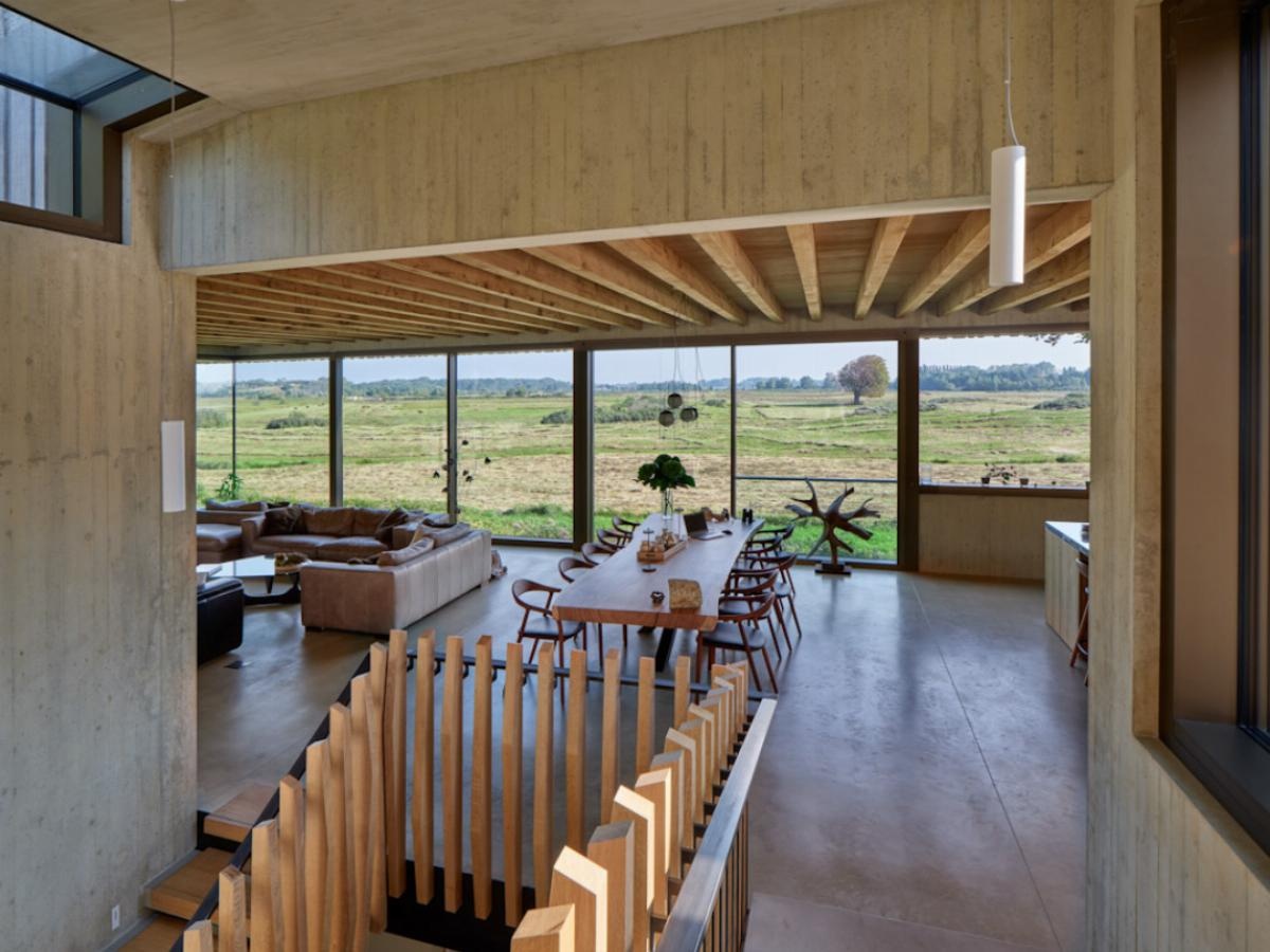 Gesitueerd op een duinrand kijkt het uit over natuurgebied Lentevreugd. Het is een ingetogen villa die voor een deel in het duin ingegraven is en zo onderdeel wordt van het landschap. Energie voor het huis wordt opgewekt door de zon en de lucht. Omdat de villa voor een deel ondergronds ligt is er een hybride constructie van beton en hout gemaakt. De materialen, zoals inlands eiken, Fraké, beton en geanodiseerd aluminium tonen hun ware aard; het materiaal wordt niet verhuld en krijgt soms een bijzondere bewerking, zoals de houten lattenstructuur in het beton. De buitengevel is één à twee verdiepingen hoog en in hout uitgevoerd, met verholen kozijnen.